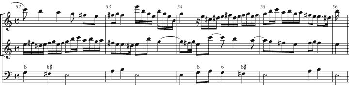 Beispiel 1: Carlo Ambrogio Lonati, Sonata a tre, C-Dur, A 9, T. 51–56.